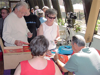 (Back-Front) Sotir Nitchov and his wife Tina signing copies